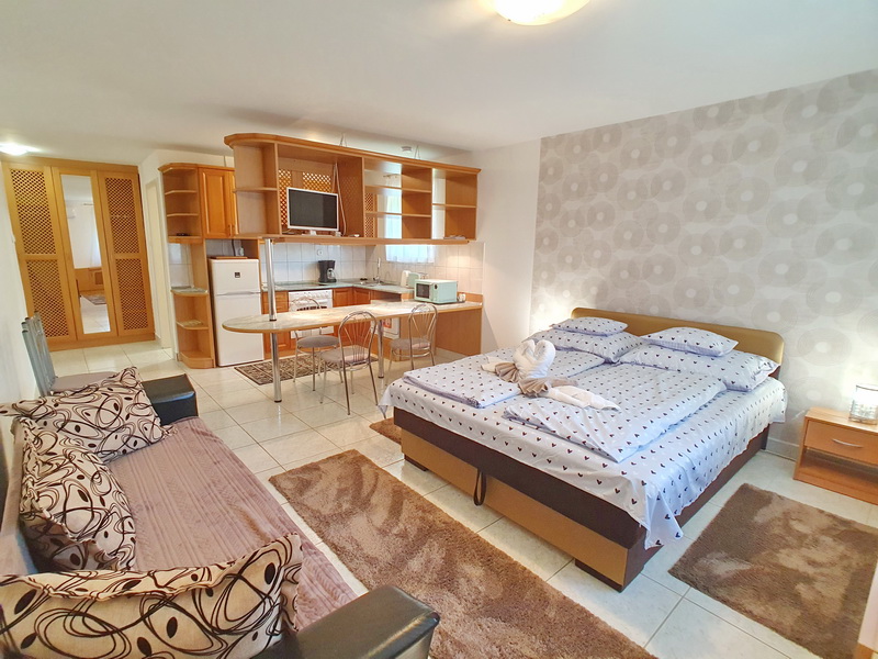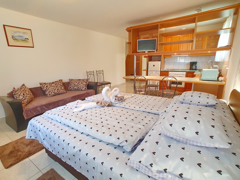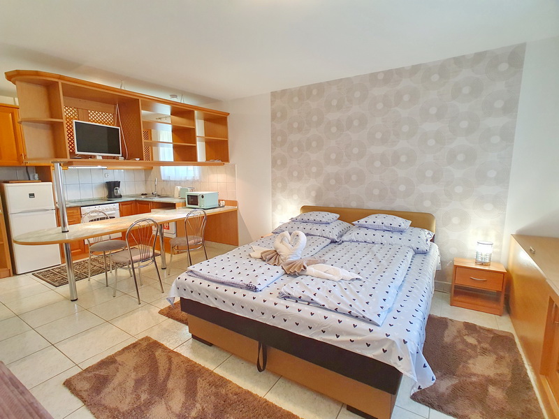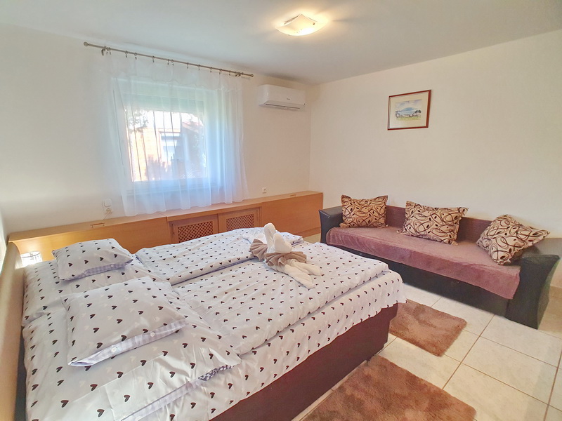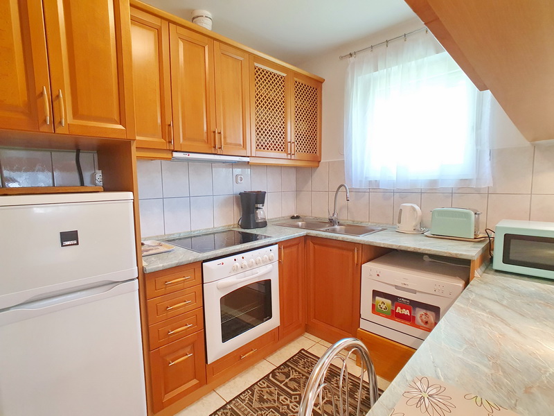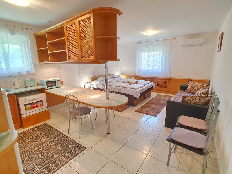 Die Nr. 56 Ferienwohnung Ani befindet sich in einer ruhigen Seitenstraße in Vonyarcvashegy, nur wenige Gehminuten vom Zentrum entfernt. Das Haus besteht aus zwei komplett getrennten Apartments mit eigenen Eingängen, die einzeln oder gemeinsam gebucht werden können – ideal für Paare, Familien oder befreundete Familien, die zusammen Urlaub machen, aber dennoch getrennt wohnen möchten.