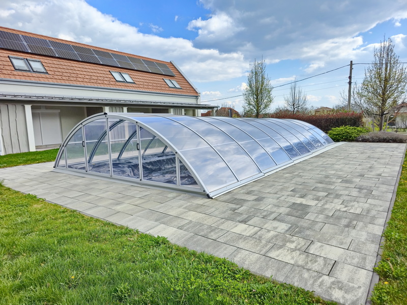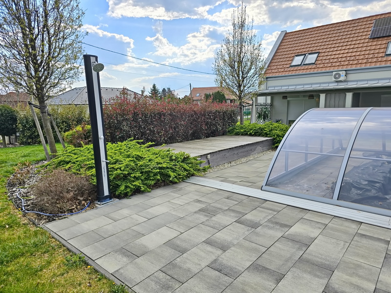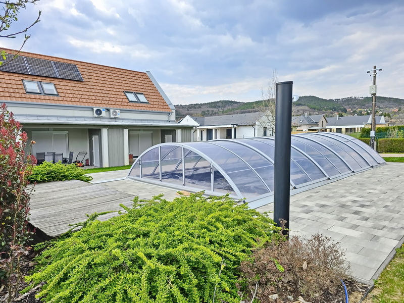 A közös medence kb. 8 × 4 méteres, 1,3 méter mély, fedett és nem fűtött. Általában májustól szeptember végéig használható.