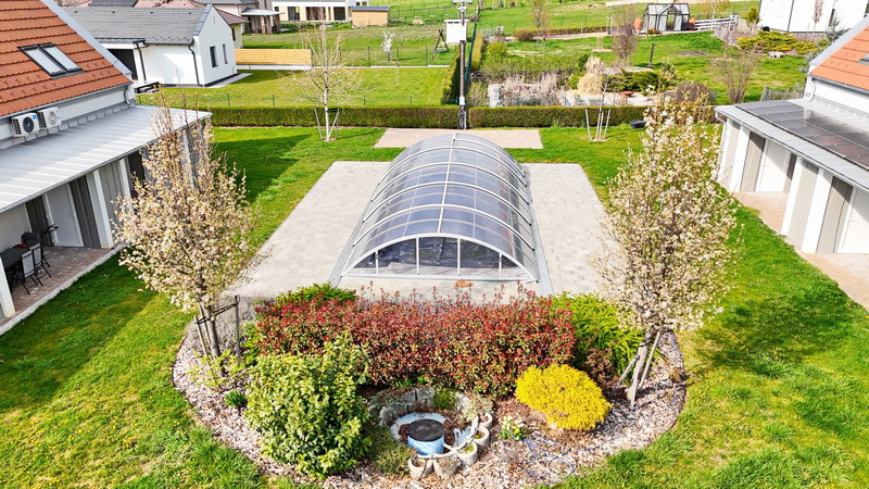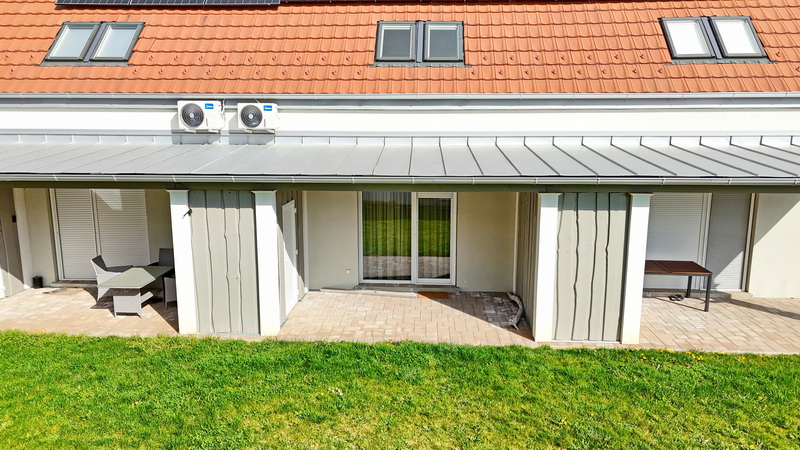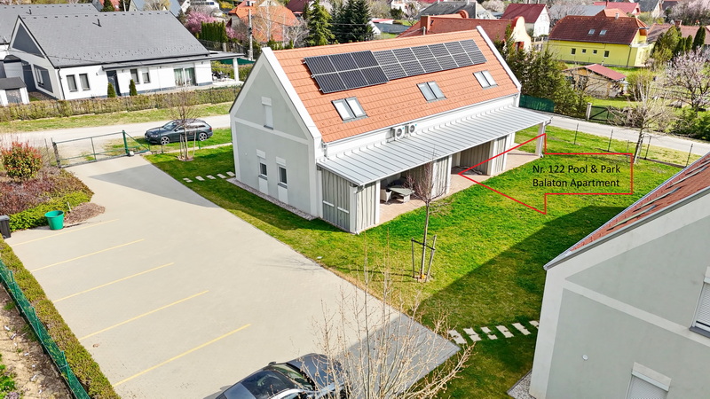 Az apartman egy 12 lakásos, zárt lakópark középső sorházi lakása, ahol a fedett teraszról közvetlenül a füves kertbe lehet kilépni.